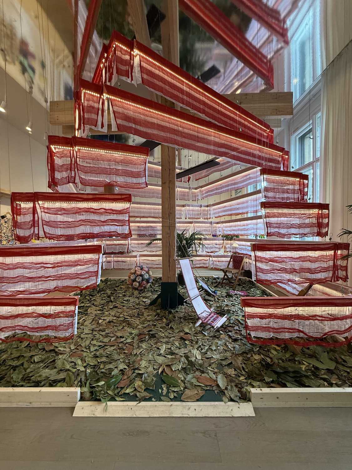 Direction la Colonne de Juillet, place de la Bastille pour marquer les esprits et ravir l’œil. L’artiste textile Aude Franjou, en partenariat avec la galerie Maison parisienne, présentait Les Coraux de la liberté. Composée de centaines de branches de corail en fibre de lin, l’œuvre s’élevait des caveaux jusqu’au sommet de la rotonde. Un dégradé du blanc au rouge profond évoquait la renaissance du vivant : des coraux blanchis, dévitalisés vers une matière régénérée, vibrante. Aude Franjou explore la croissance organique, la résilience et la force silencieuse du vivant. C’est une façon absolument sublime de rappeler que les fonds marins et les coraux sont en grand danger. Même la superbe Grande barrière de corail en Australie est menacée par le réchauffement climatique. Aude Franjou nous rappelle avec talent que les états se doivent de réagir rapidement devant ce désastre. Bravo Madame !