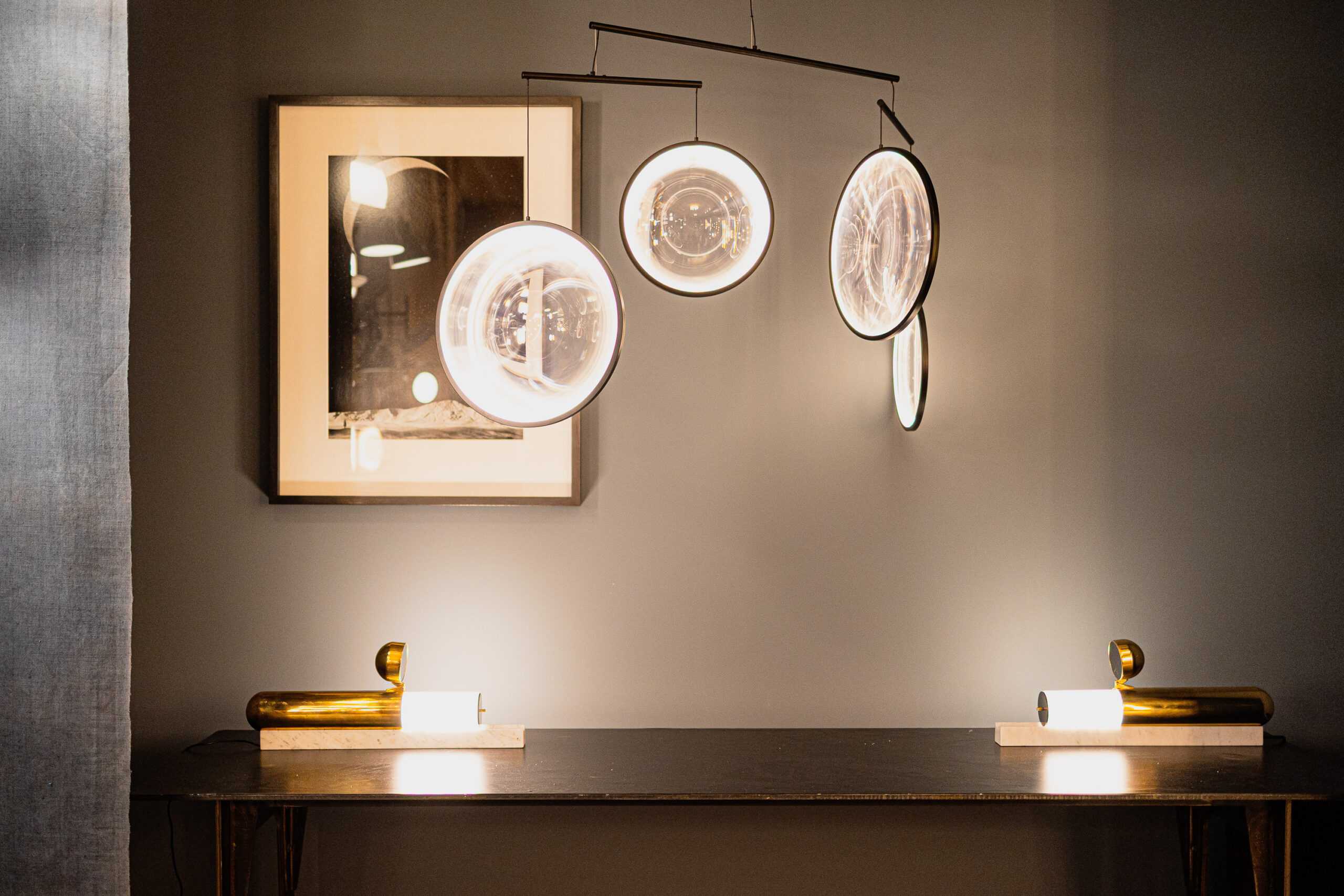 Une première à la Design Week pour la marque Luceplan dans leur showroom dans le Marais avec l’architecte, designer gothique, Odile Decq, habillée dans le plus pur style du créateur américain Rick Owens. Elle collabore dès 2012 avec cette marque de luminaires à une époque où la dimension acoustique était encore peu prise en compte dans les projets d’aménagements intérieurs. Odile Decq présentait trois luminaires : Pétale, Soleil Noir et le dernier Dix Bougies, tous très aboutis.