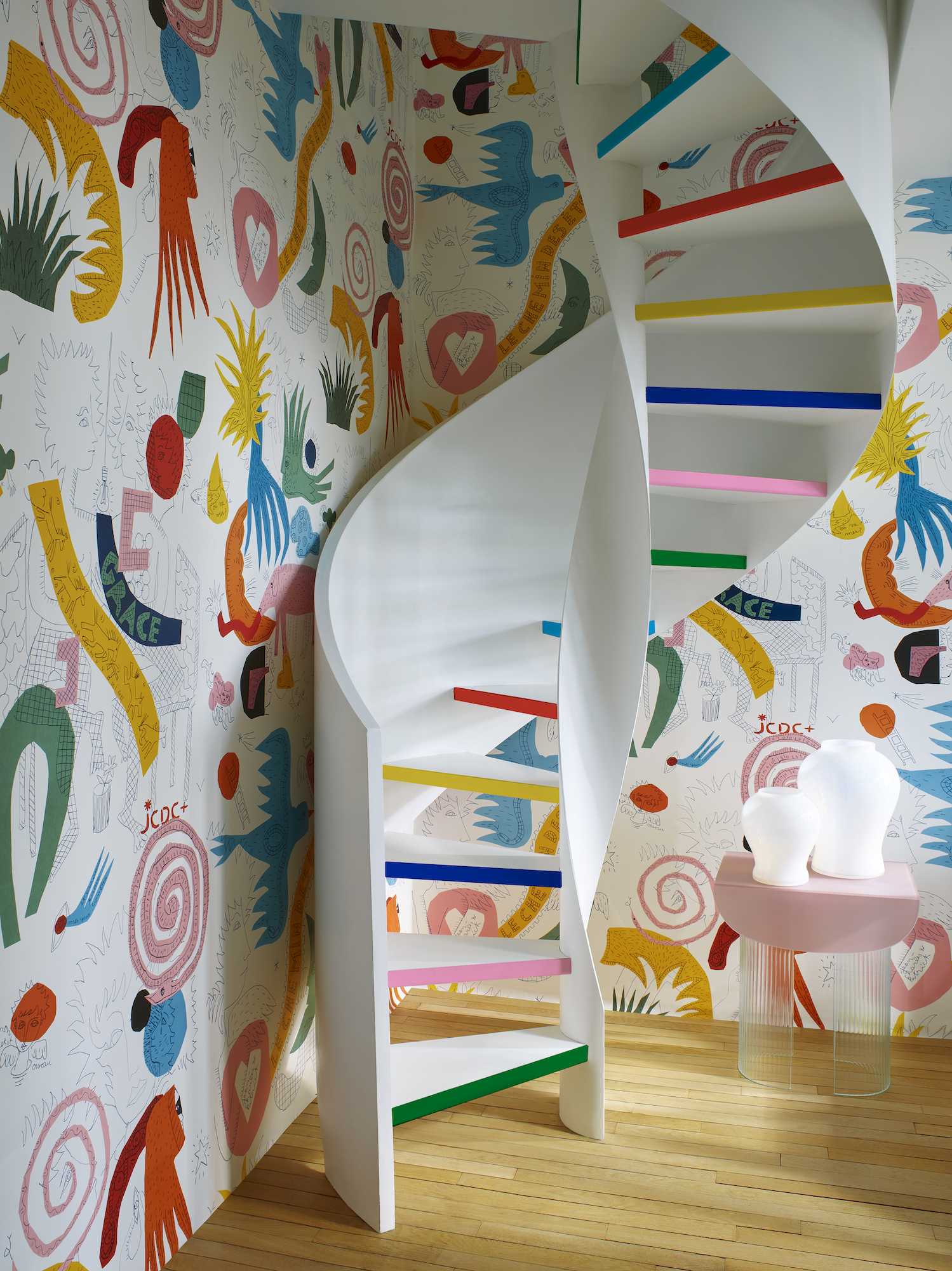 C’est l’histoire d’une rencontre entre deux univers : celui de Jean-Charles de Castelbajac, créateur visionnaire à l’imaginaire pop et poétique, et celui de Patrick Frey, président de la Maison Pierre Frey, gardien d’un savoir-faire d’exception depuis 1935. Ensemble, ils signent une collection de tissus, papiers peints et tapis baptisée La couleur de nos rêves — un hymne à la joie, à la douceur et à la création sous toutes ses formes.