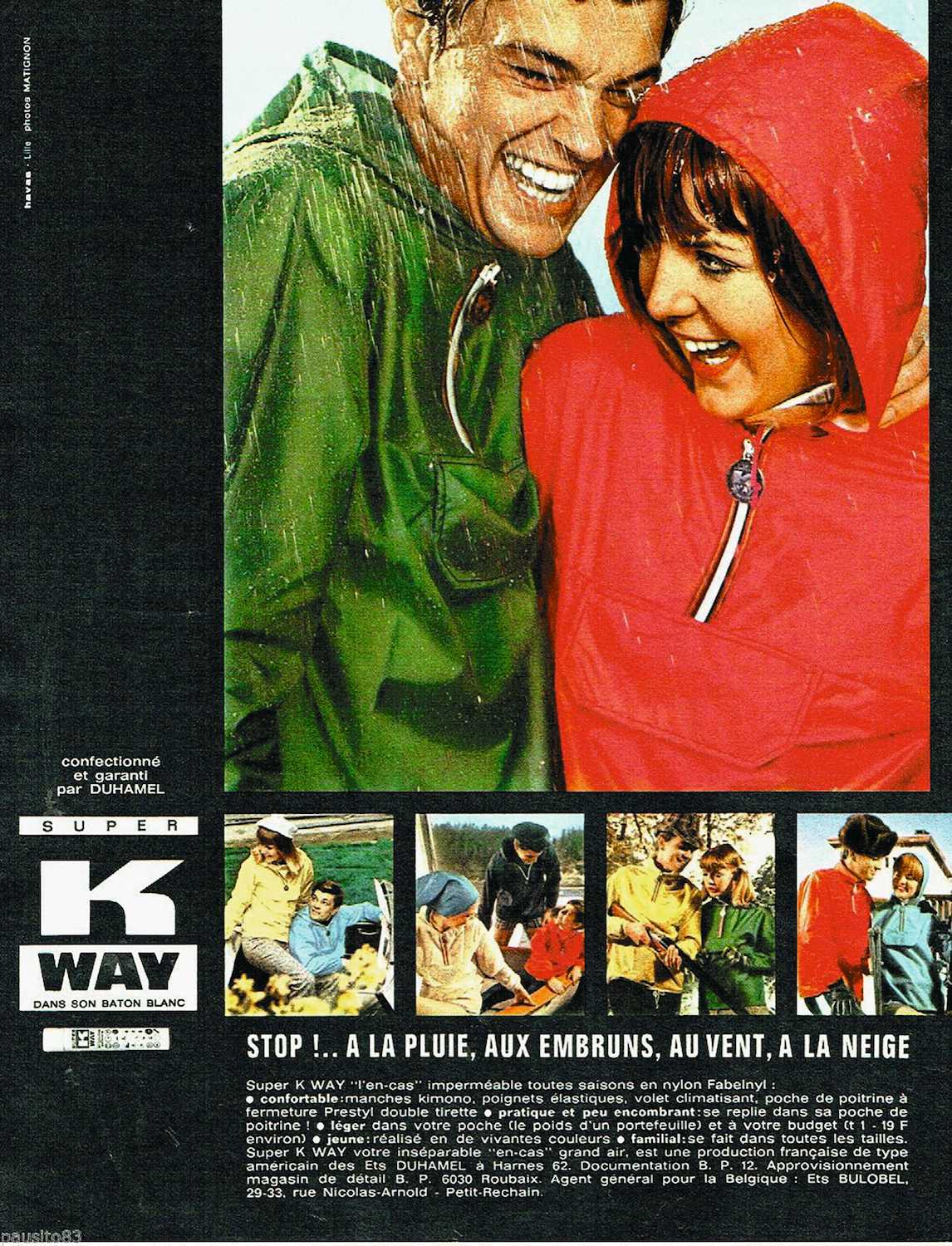 L’histoire commence un jour de pluie à Paris, comme il s’en produit si souvent dans les villes où les idées germent mieux sous le crachin. Un jeune entrepreneur, Léon-Claude Duhamel, est attablé au Café de la Paix et observe les passants, engoncés dans des imperméables lourds qui semblent dater. Et là, l’illumination : pourquoi la pluie devrait-elle forcément peser lourd ? Quelques prototypes plus tard, apparaît ce coupe-vent en nylon léger, pliable sur lui-même, qui se glisse dans une poche comme un secret bien gardé. Un vêtement si pratique, si vif, si joyeusement coloré qu’il conquiert la France (et le monde !) comme une ritournelle.