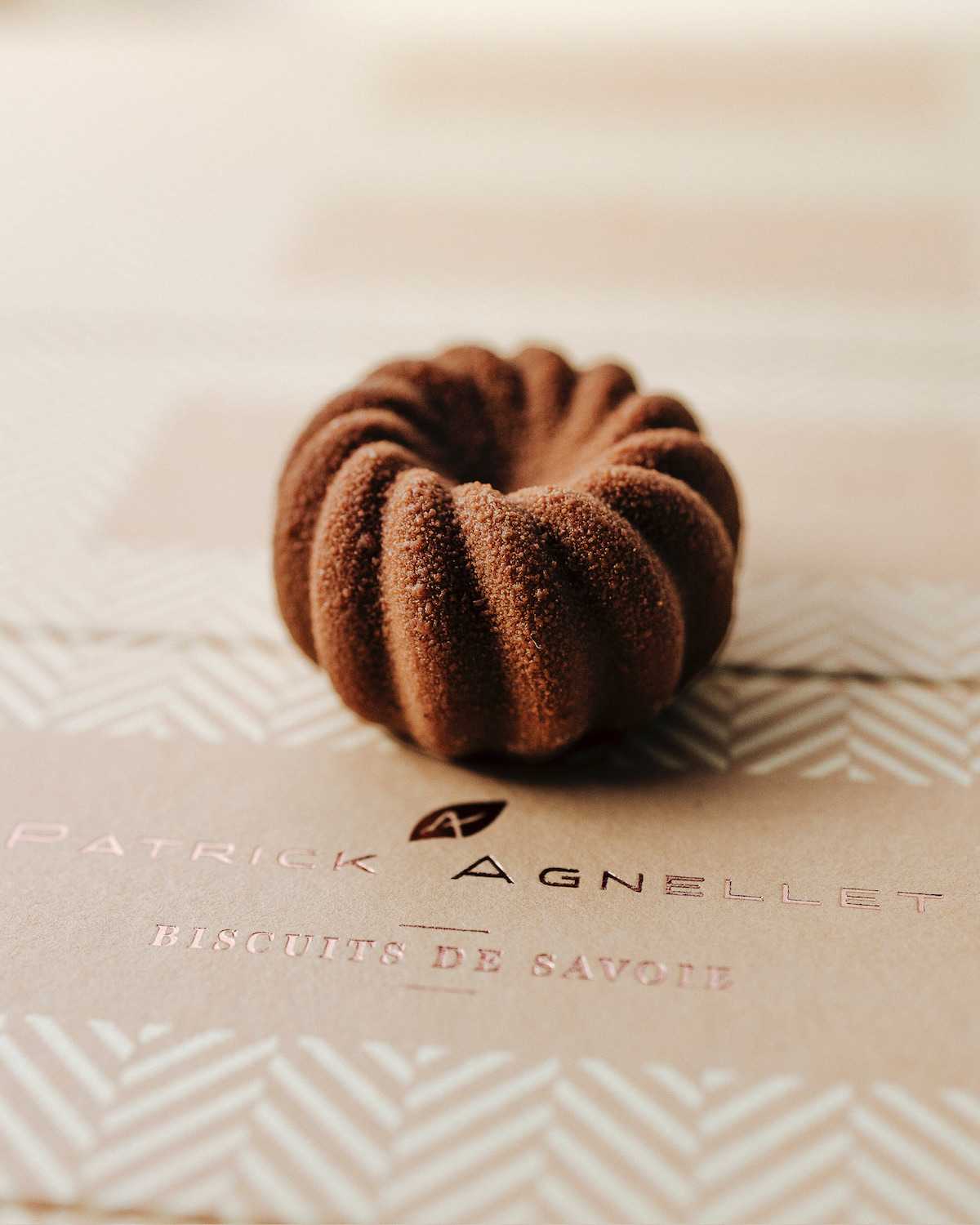 Patrick Agnellet, le fameux maître chocolatier d’Annecy, nous met l’eau à la bouche avec un biscuit de Savoie en chocolat ! Pour sa dernière création, il a imaginé une friandise qui célèbre aussi le patrimoine. Cette petite bouchée cache bien son jeu : sa forme de gâteau recèle un chocolat lacté, riche en noisettes du Piémont, territoire pas si éloigné. Sur le palais, la texture à la fois fondante et craquante se révèle très séduisante.