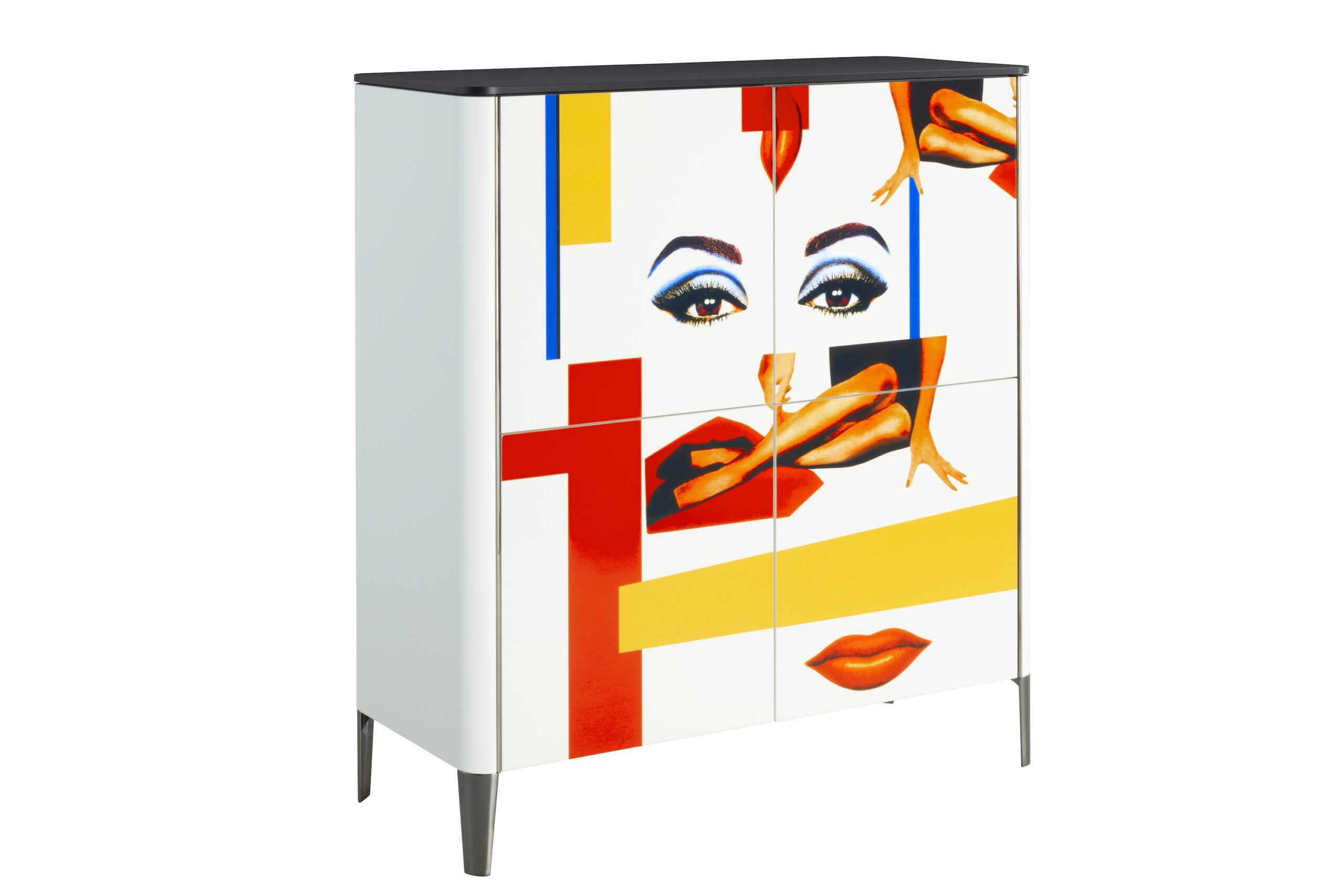 Le vaisselier Rondo, quant à lui, célèbre quatre visuels emblématiques : trois affiches (Attache-moi, Talons aiguilles, Femmes au bord de la crise de nerfs) et une photographie signée par Almodóvar lui-même.