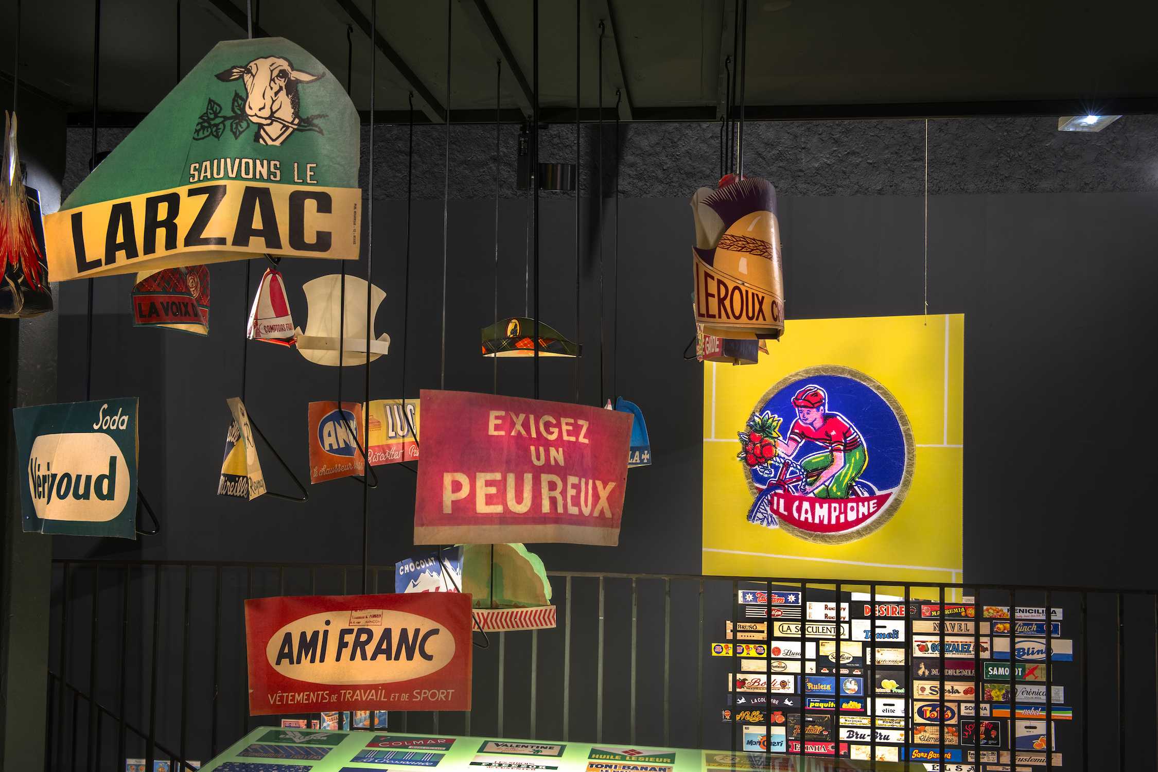 La seconde partie de l’exposition s’intéresse au contexte dans lequel circulent ces images : celui de nos échanges marchands quotidiens. Les produits que nous consommons chaque jour sont entourés de visuels qui cherchent à traverser le temps. Cette imagerie populaire puise dans des motifs, des marques, des souvenirs et des figures familières qui nous séduisent, au point que certains les collectionnent.