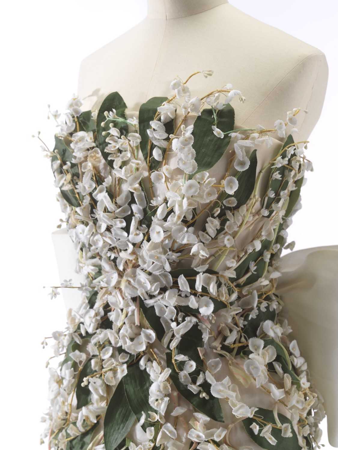 Pour ce premier chapitre, Galliera choisit un motif universel et intarissable : la fleur. Présente depuis le XVIIIᵉ siècle dans les garde-robes aristocratiques comme dans les créations les plus futuristes, elle devient ici fil conducteur. Ses métamorphoses, d’époque en époque, révèlent la virtuosité des artisans : volumes sculptés, coloris travaillés comme des pigments de maître, motifs placés avec une précision presque chorégraphique.