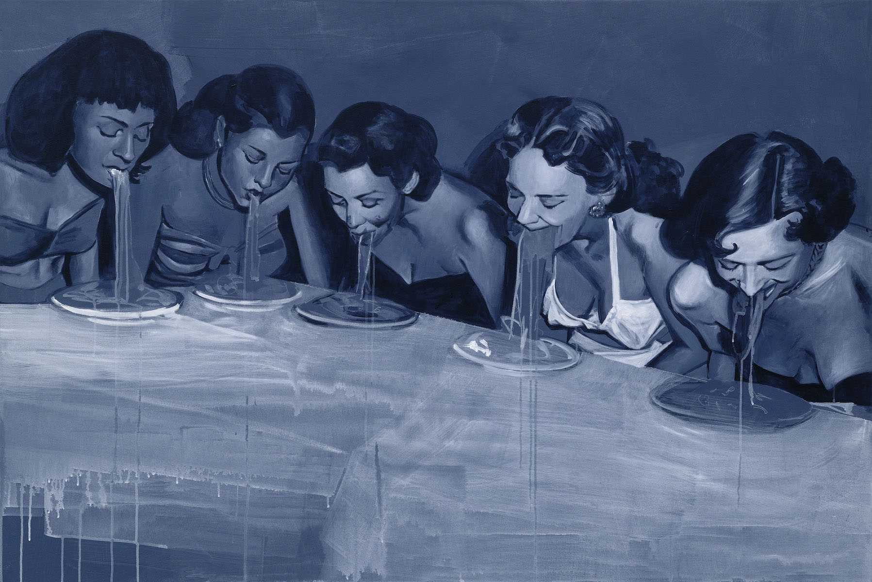 Il faut gagner le 3e niveau pour trouver de l’art figuratif avec le travail de Giulia Andreani. avec Avec une soixantaine d’œuvres, « Peinture froide » retrace plus d’une décennie de pratique de cette artiste diplômée des Beaux-Arts de Venise. Sa singularité est de n’utiliser qu’une seule couleur, le gris de Payne. Développé par cet aquarelliste anglais au 18e siècle, il accentue les jeux d’ombre et de lumière, ainsi que les effets de clair-obscur. Les œuvres de cette férue d’histoire explorent les dynamiques de pouvoir, les régimes totalitaires, les contre-pouvoirs incarnés par les femmes, les résistances et le rôle de l’artiste. « Il doit rester un agent perturbateur comme un microbe dans un organisme. Une peinture figurative est faussement plus accessible et potentiellement plus dangereuse » assure cette quadragénaire. Un conseil : regardez donc avec attention.